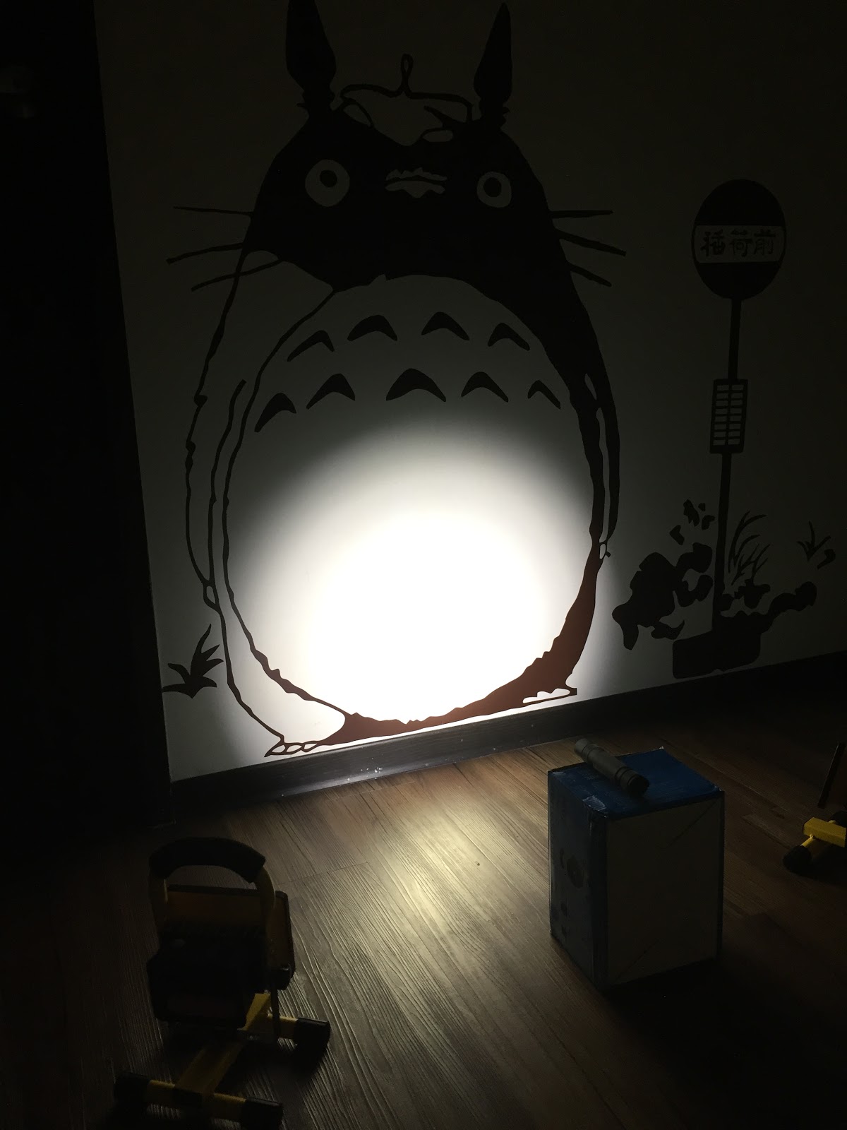 切到最強光,還不錯,光線不會特別集中,範圍大概就是跟龍貓的肚子一樣大XD
